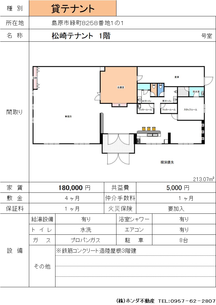 | 島原市片町644-1 | 本田貸事務所 | 貸事務所 | 88,000 | 320,000 | ||